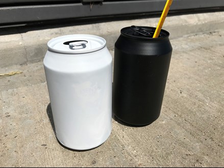 - Fyld koldt vand fra hanen i dåserne og tjek, at vandet i begge dåser har samme temperatur. Sæt dåserne ud i solen eller tæt på en stærk lampe.