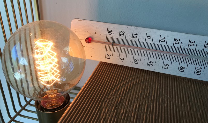 - Placer jeres termometer 1 centimeter fra pæren eller lyset. Vent 1 minut og skriv temperaturen ned.