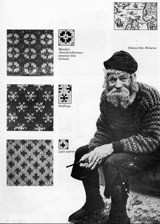 Når man strikker en trøje, kan man bruge et mønster, som dem du kan se på billedet. Så skifter man mellem to farver garn på en måde, som kan gentage sig. På Færøerne har man en meget kendt bog, ’Føroysk Bindingamynstur’, med gamle strikke-mønstre.