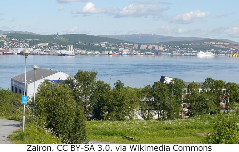 Golfstrømmen betyder rigtig meget for Norges kystområde. Hvis I ser på disse to sommerbilleder, kan I se, hvor stor forskellen er fra Ilulissat i Grønland, hvor der ikke er en varm Golfstrøm, og Tromsø i Norge, som ligger ca. lige så langt nordpå, hvor Golfstrømmen varmer havet og fjordene op.