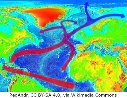 Golfstrømmen spiller en afgørende rolle for naturen og klimaet på Færøerne og også på den grønlandske vestkyst. Den består af nogle havstrømme fra den Mexicanske Golf, som sender varmt vand op til Færøerne og Skandinavien. Dermed fungerer Golfstrømmen som en kæmpe radiator, der holder områderne varmere, særligt om vinteren, end de ellers ville være. Hvis Golfstrømmen stoppede, ville Danmarks gennemsnitstemperatur falde med 7-10 grader. Faktisk mener nogle forskere, at Golfstrømmen er ved at stoppe på grund af klimaforandringer. Så selvom vi taler meget om, at klimaet bliver varmere, så kan klimaforandringerne altså også komme til at betyde, at det bliver koldere i Danmark. I kan se en norsk film om Golfstrømmen her: